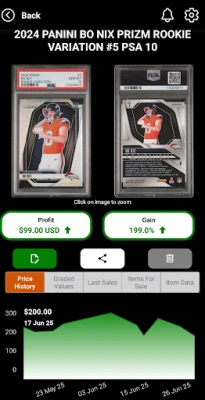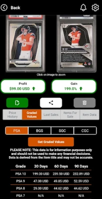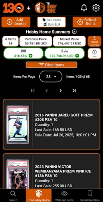 Now you can easily look up sold items or active listings across a wide array of online marketplaces including eBay, PWCC, Goldin, Heritage Auctions, MySlabs and Pristine Auctions with more marketplaces being added. Simple open the app, login and start searching through more than 15 million sold items, and millions of active listings. But why stop there when you can save your favorite searches and watch items you are interested in buying. You'll receive a notification when your watched item is about to end so you can grab a bargain or add that highly sought after collectible to your personal collection!