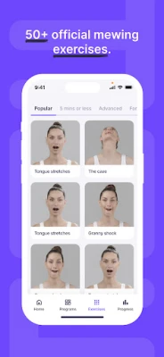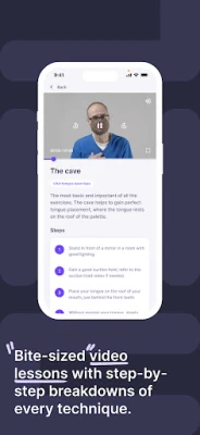 Navigate seamlessly with the user-friendly interface, exploring categories like tongue posture correction, breathing exercises, and orthodontic tips. Track your progress and watch personalized videos from Dr. Mike Mew to match your Mewing journey.