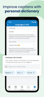 ■ Personal Dictionary: Nagish allows you to add custom words, phrases, or acronyms that you commonly use or may be unique to your conversations. This feature ensures that Nagish accurately transcribes calls and recognizes the language and terminology that matters to you.