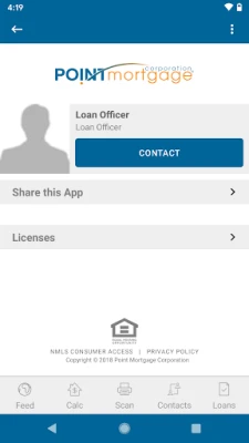 • Easily access contact information for your Point Loan Officer and real estate agent and share this information with your family and friends.