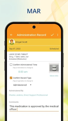 • Access to the list of scheduled medications